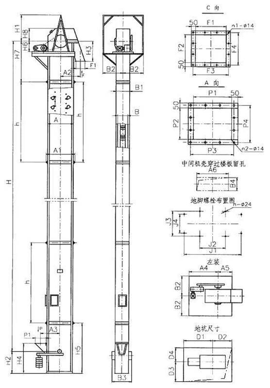 三、NE系列板鏈斗式提升機(jī)主要結(jié)構(gòu)及特點(diǎn):