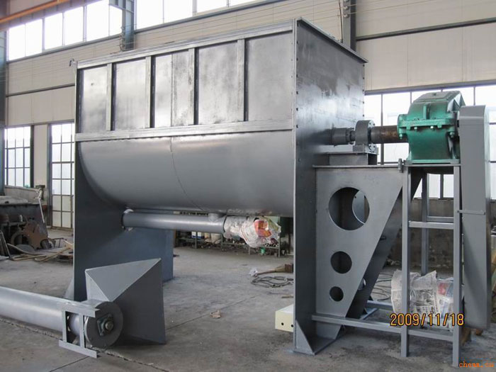 臥式螺帶混合機底部出料方式:粉體物料采用氣動大開門結(jié)構(gòu)形式,具有卸料快、無殘余等優(yōu)點;高細度物料或半流體物料采用手動蝶閥或者氣動蝶閥,手動蝶閥經(jīng)濟適用,氣動蝶閥對半流體的密封性好,在需要加熱或冷卻的場合,可配置夾套。加熱方式有電加熱和導熱油加熱兩種方式,電加熱方便,但升溫慢,能耗高;導熱油加熱需要配置油鍋和導油動力、管道,能耗較低。冷卻工藝可直接向夾套內(nèi)注入冷卻水,夾套換熱面積大,冷卻速度快。電機與攪拌主軸之間通過擺線針輪式減速機聯(lián)接,結(jié)構(gòu)簡單,運行可靠,維護方便。